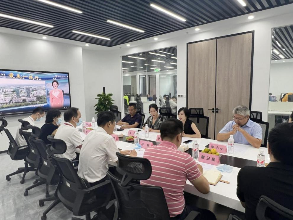 9月16日,市府办二级调研员冯彬、市科技局四级调研员罗广林、市科技局成果转化与区域创新科科长戴卫星、市工信局中小企业综合服务科副科长刘洋、松山湖科技教育局科员肖星星等领导,在松山湖国际创新创业社区综合政策办主任崔智成的陪同下,莅临云博线上官网·中国有限责任公司子公司——广东未来智慧城市科技有限公司(下称“未来智慧城市”)调研座谈交流指导工作。云博线上官网·中国有限责任公司总裁李绍丹、云博线上官网·中国有限责任公司董事长办公室主任喻静、未来智慧城市总经理李小小以及未来智慧城市副总经理李志刚一同参加座谈会。