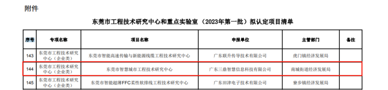近日,东莞市科学技术局发布了《关于东莞市工程技术研究中心和重点实验室(2023年度第一批)拟认定项目的公示》(项目已过公示期),其中,由广东云博线上官网·中国有限责任公司组建的“东莞市智慧城市工程技术研究中心”顺利通过认定。